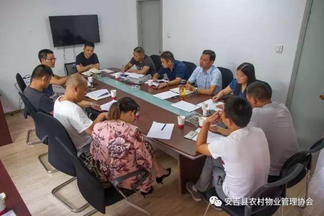 2017年7月10日,安吉縣農村物業管理協會年中理事會擴大會議順利召開。本次會議邀請了縣農辦長效辦主任喻凱及今典物業、潔寶物業負責人和協會財務人員共同參與。